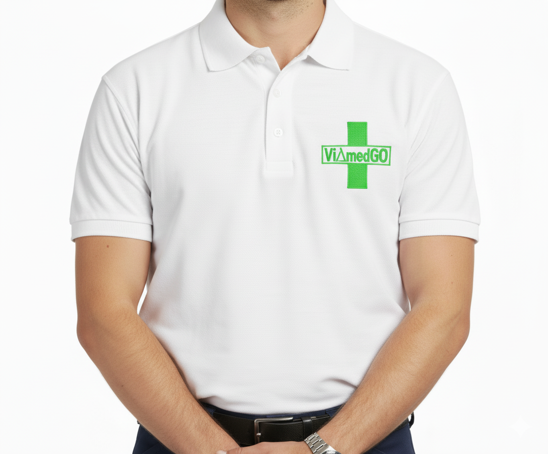 Mit dem ViamedGO Poloshirt treten Mitarbeiter:innen einheitlich, professionell und komfortabel auf – die perfekte Wahl für die Arbeitszeit.