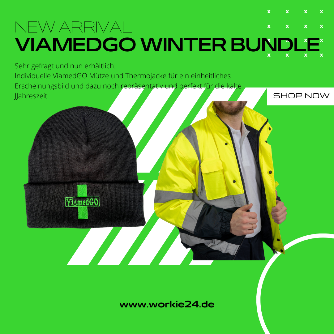 Sichern Sie sich das ultimative Winterpaket! Mit dem ViamedGO Winter-Bundle erhalten Sie unsere hochwertige Thermojacke und die stylische ViamedGO Mütze – perfekt für kalte Tage und ein professionelles Auftreten.